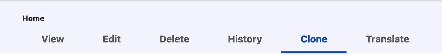 The clone content interface is available from the menu, just like the history and translate tabs.