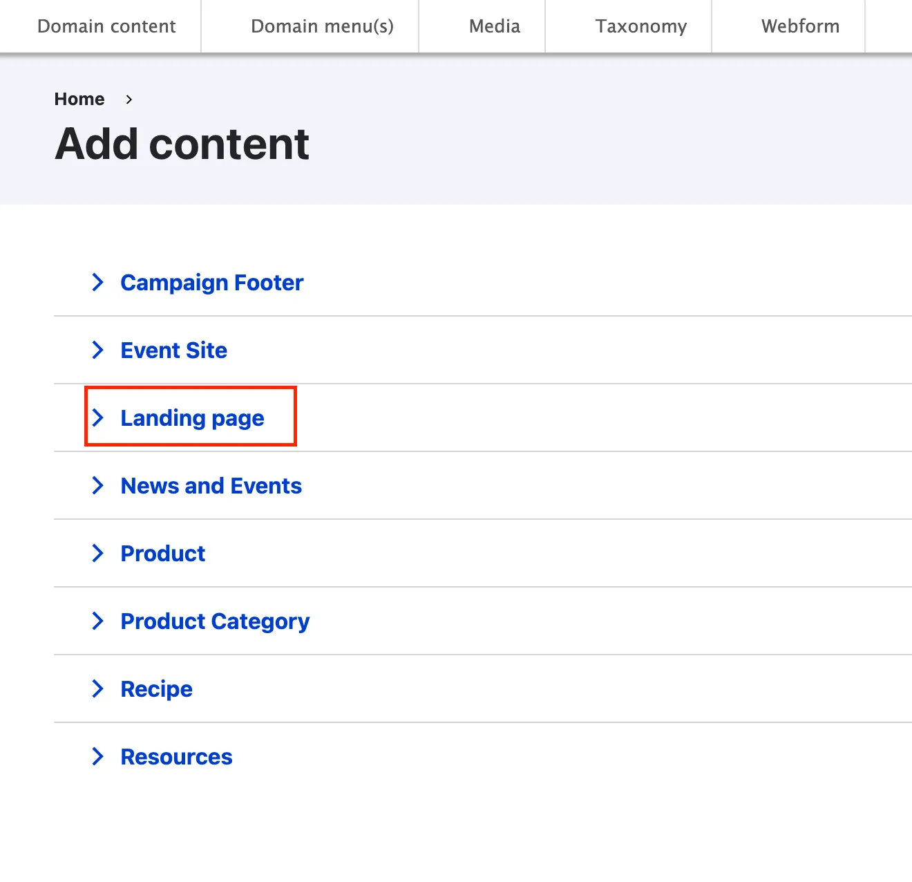 - Landing page content type