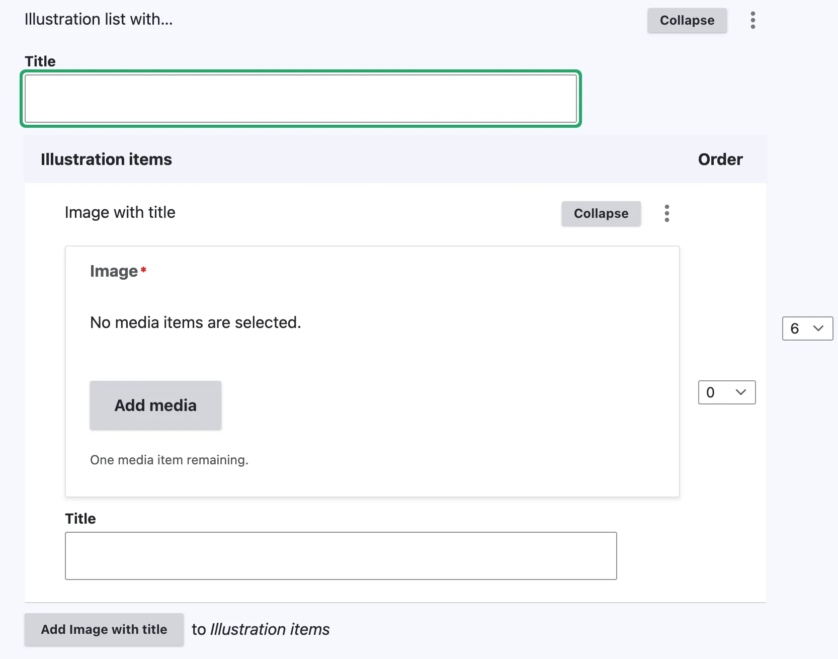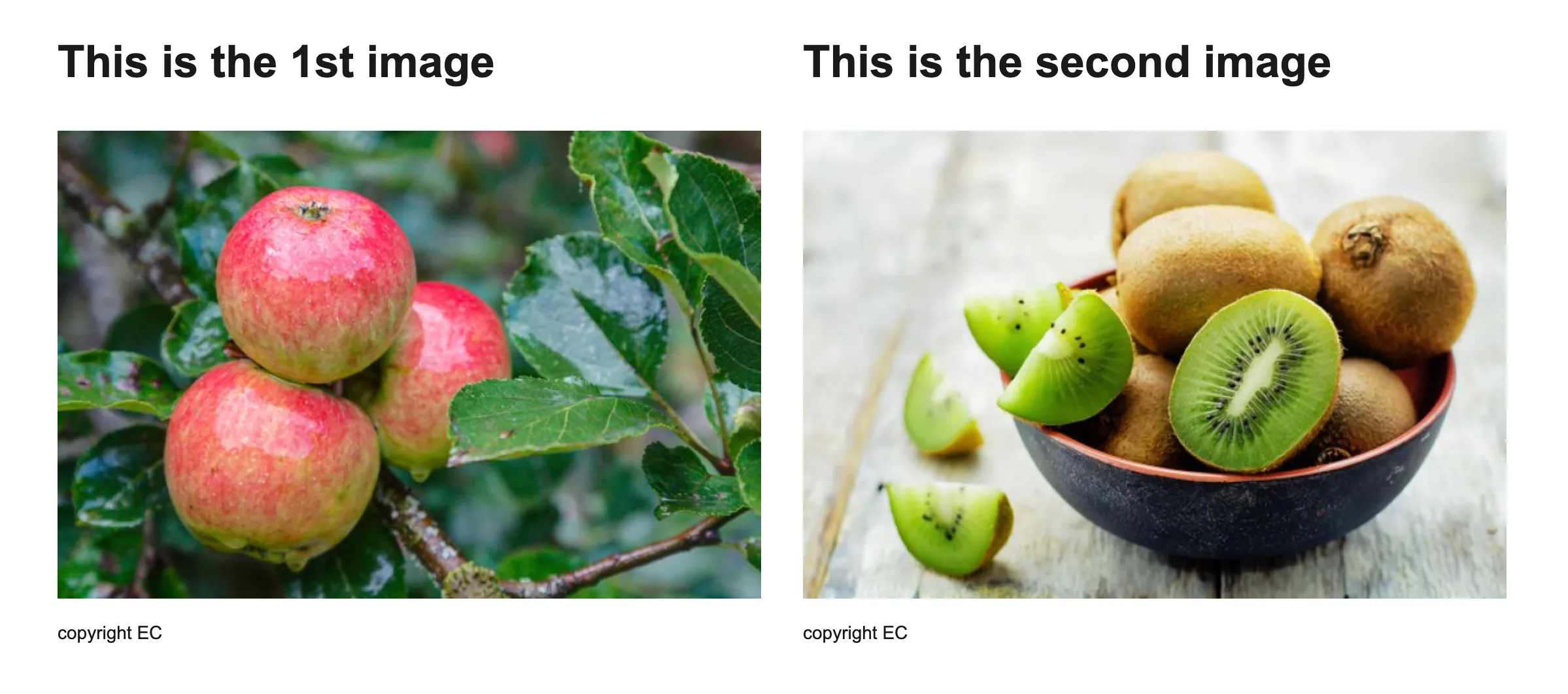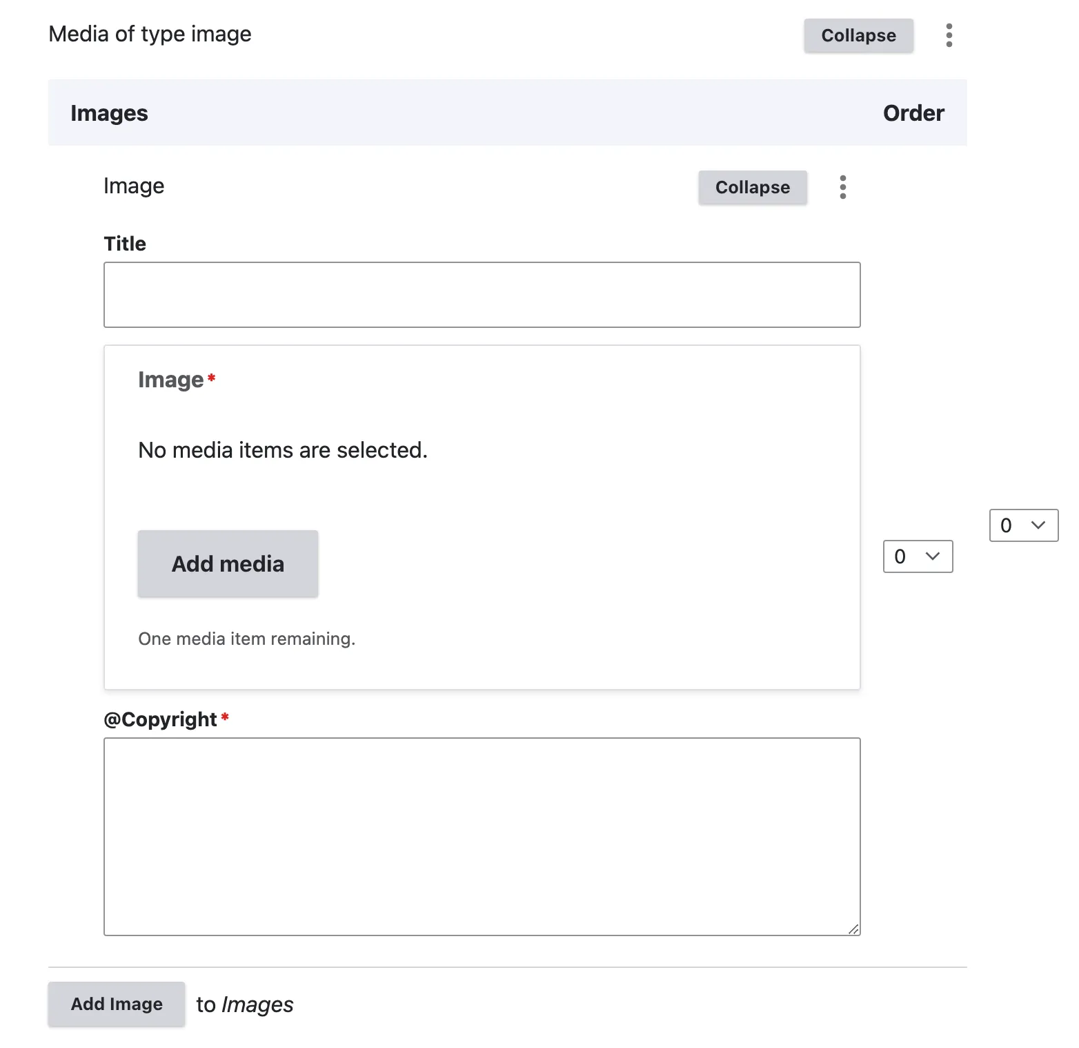 The title will be an H2, displayed above the image within the body of the page. To comply with copyright policy, a copyright notice must be provided for the image. The “Add Image” option allows you to upload a second image aligned in the same row. If only one image is uploaded, it will be centred on the page.