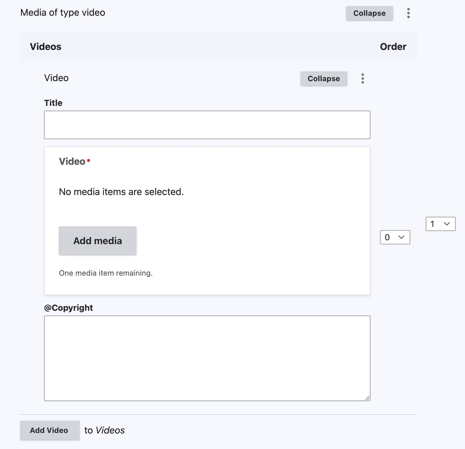 The “Add Video” option allows you to upload a second video aligned in the same row. If only one video is uploaded, it will be centred on the page.