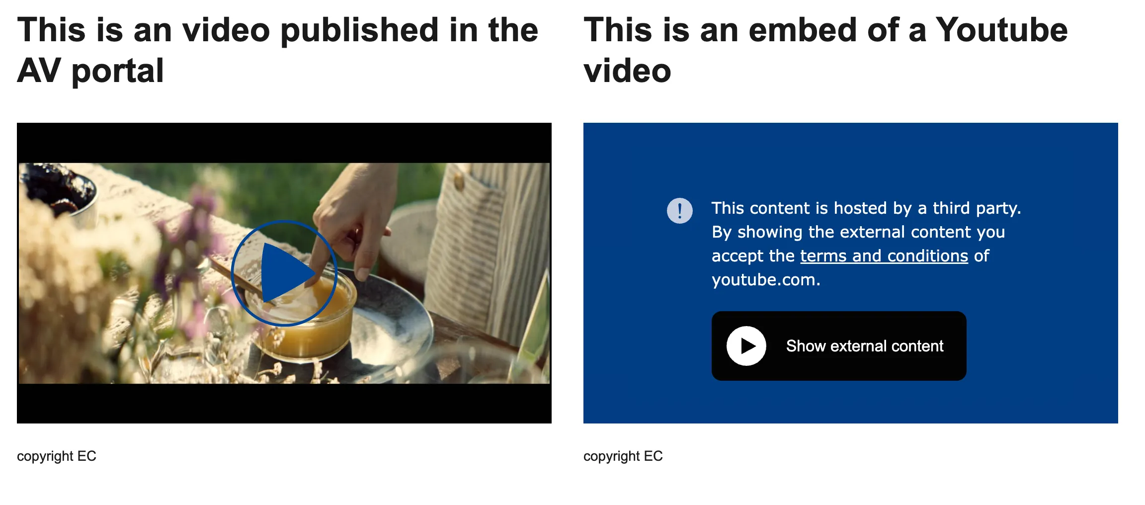 Third-party hosted videos (YouTube or Vimeo) are subject to iframe restrictions for GDPR compliance. Users must accept the conditions the first time they wish to view a video. Once accepted, the restrictions are lifted for all other third-party hosted videos on the EIFE portal.