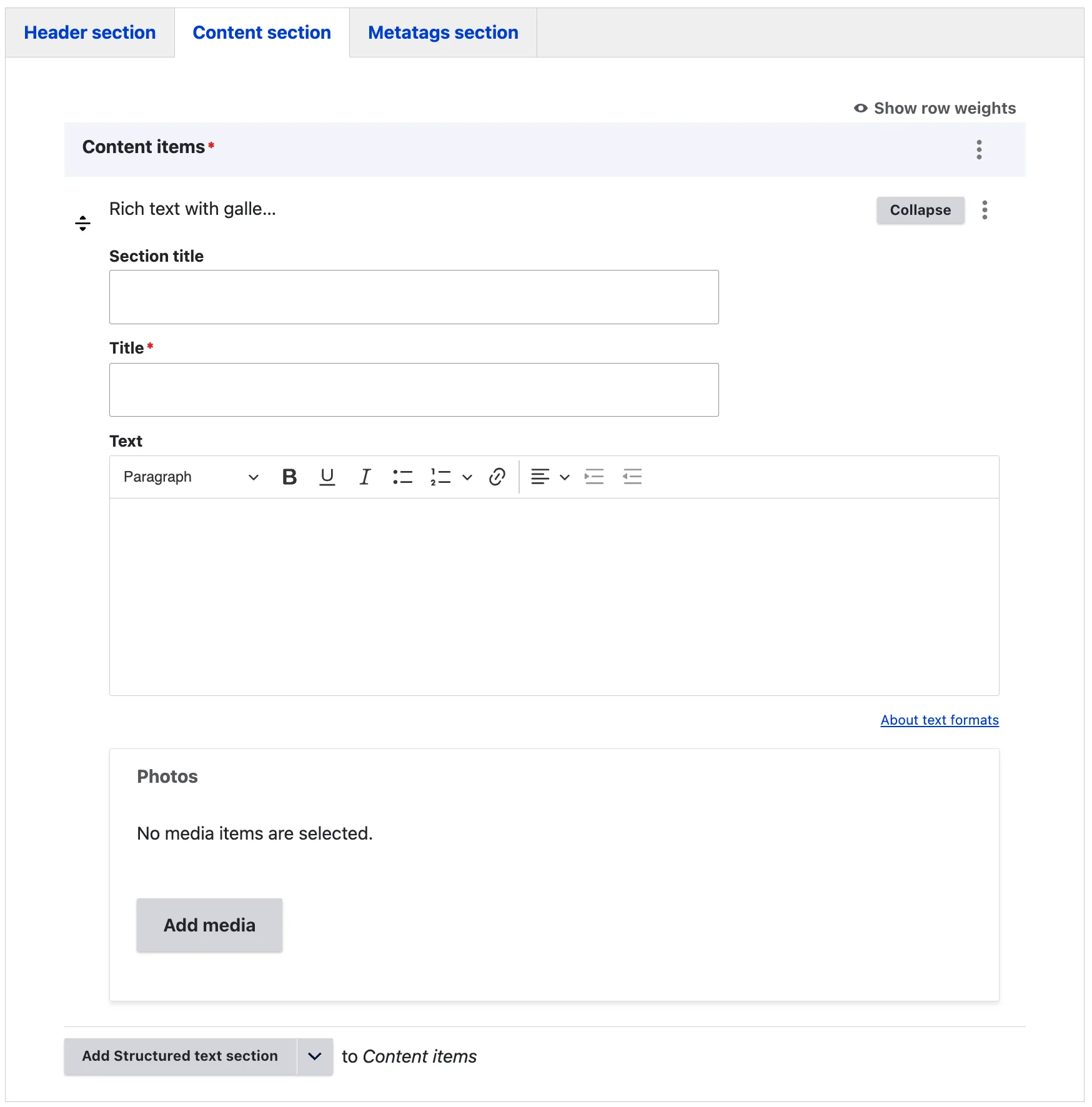 - Rich text content items