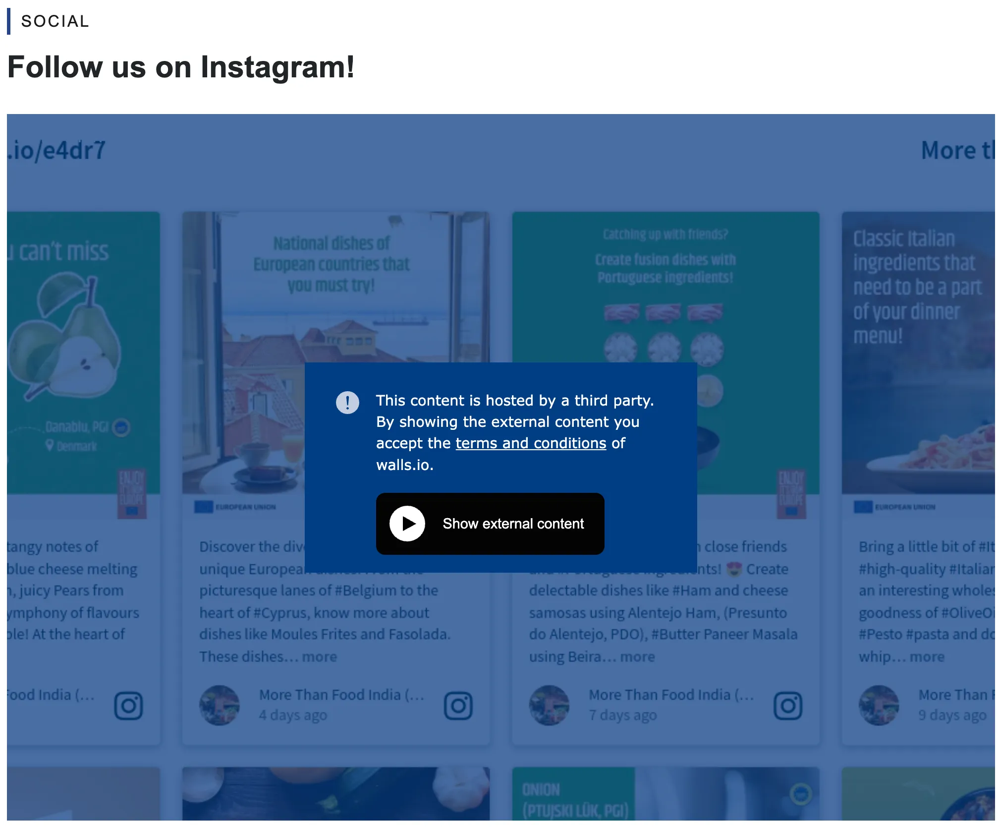 The EIFE portal offers editors the ability to embed content from third-party services using iframes. This feature was specifically designed to support the integration of social media walls from services like Walls.io or Flockler.com, providing a seamless way to display dynamic, user-generated content directly within the portal.